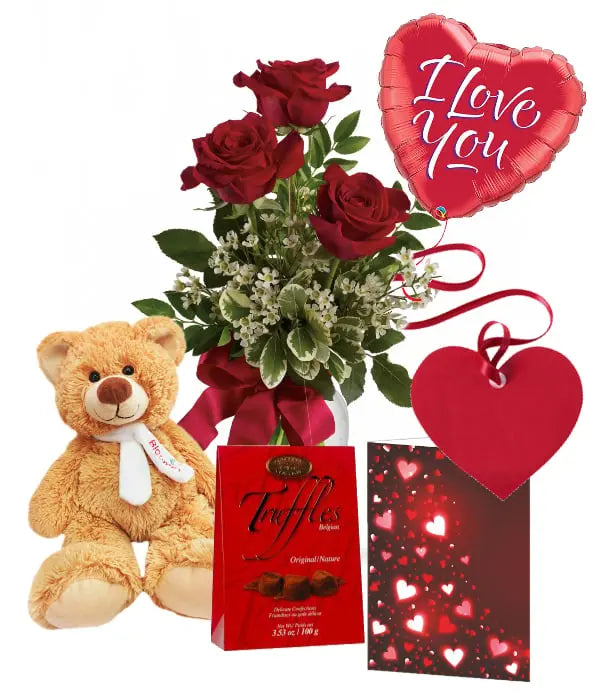 A Sweet Surprise with Roses, Teddy Bear, Truffles & More
